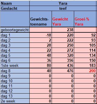 Weegtabel Yara heeft op dag 8 haar geboortegewicht verdubbeld. Dit delen: Delen op X (Opent in een nieuw venster) X Share op Facebook (Opent in een nieuw venster) Facebook Vind-ik-leuk Aan het laden...